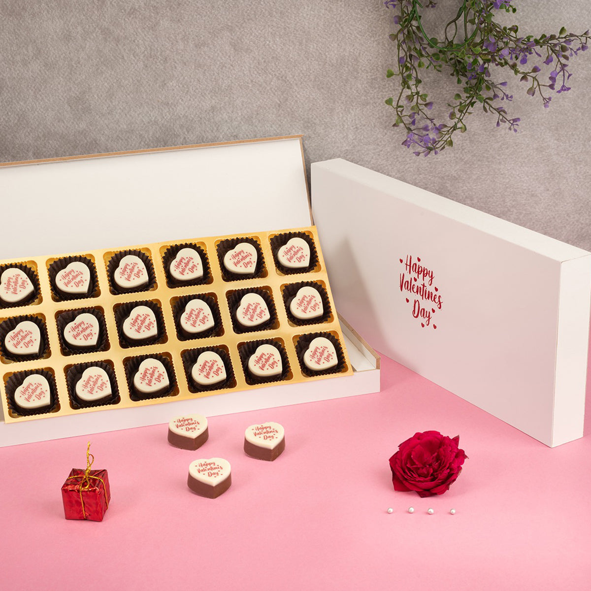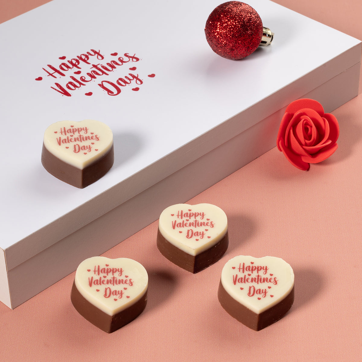 Each piece of chocolate has 2 layers. The thin top layer is a smooth white coating chocolate where the design is printed using high-quality, food-grade edible ink. The base is made from premium Belgian couverture chocolate for a rich and indulgent taste.