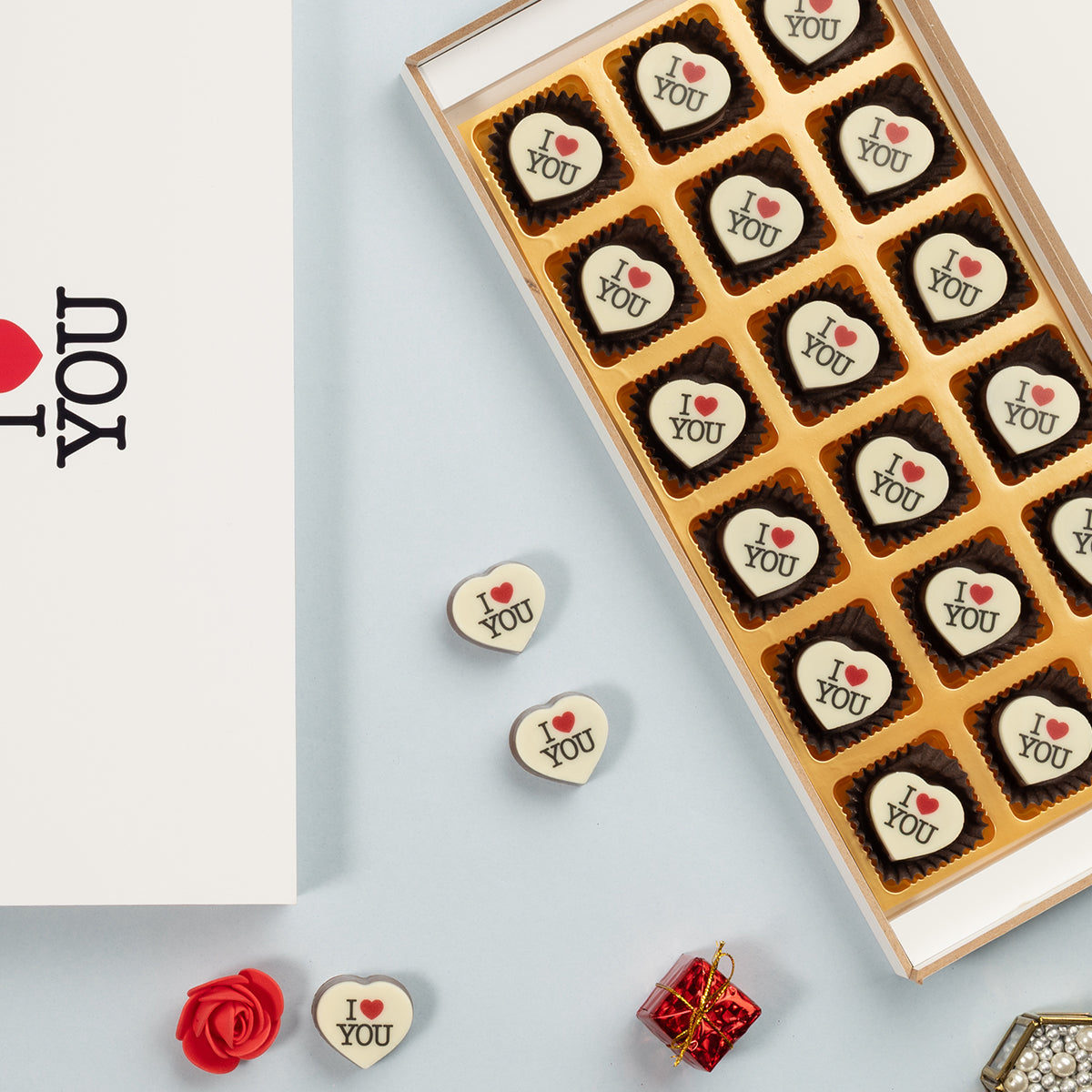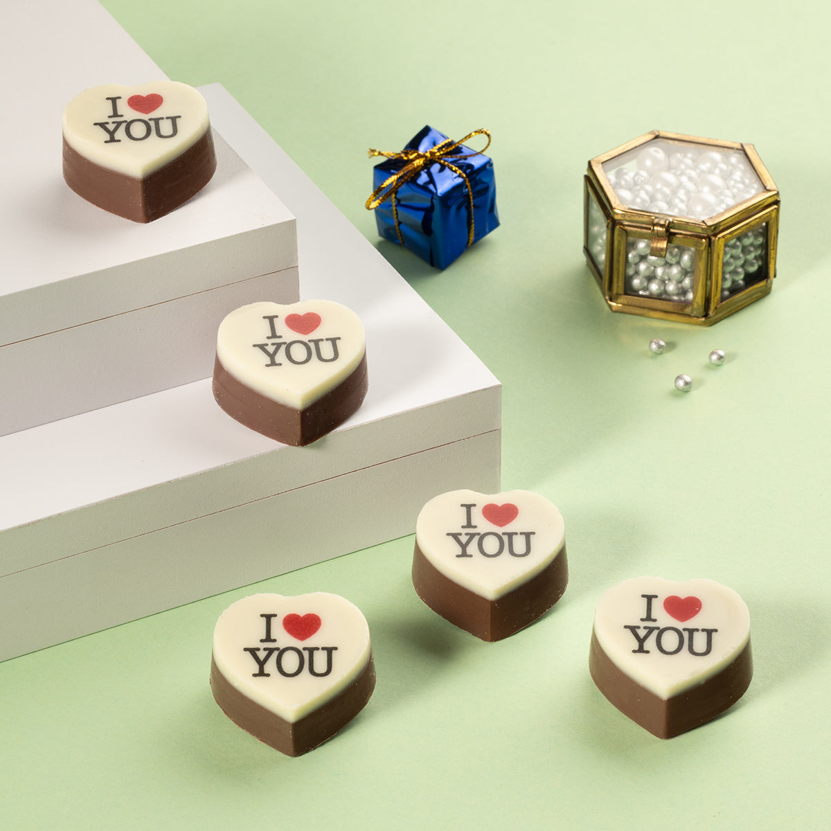 Each piece of chocolate has 2 layers. The thin top layer is a smooth white coating chocolate where your design is printed using high-quality, food-grade edible ink. The base is made from premium Belgian couverture chocolate for a rich and indulgent taste.